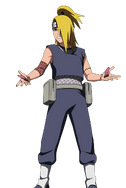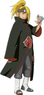 Deidara (デイダラ, Deidara) was an Due south-rank missing-nin from Iwagakure. During his time in the village, he was a member of the Explosion Corps. After defecting from the hamlet, he was forced into Akatsuki and was its youngest fellow member. There, Deidara was partnered with Sasori until the latter'south death, and later on with Tobi before his ain death.